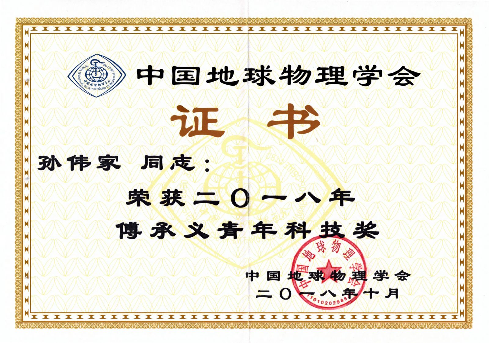 2018年10月20日至23日,中國地球科學(xué)聯(lián)合學(xué)術(shù)年會(huì)在北京召開。在本次年會(huì)上,中國地球物理學(xué)會(huì)向五位青年科技工作者頒發(fā)了2018年度"傅承義青年科技獎(jiǎng)"。我室孫偉家副研究員榮獲此獎(jiǎng)。