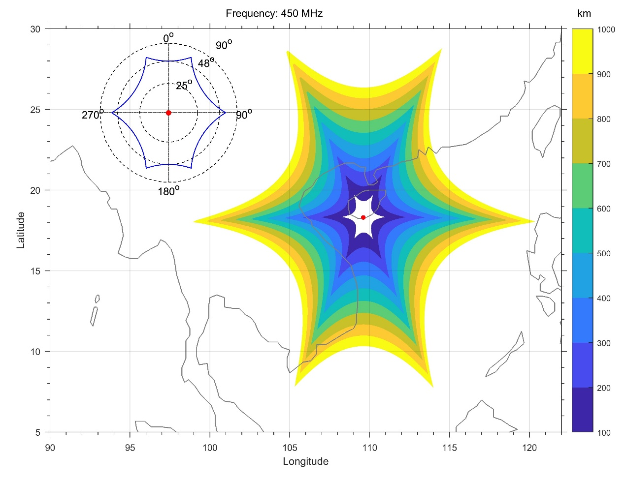 圖2. 三亞雷達(dá)有效探測(cè)范圍。