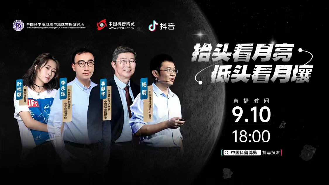 9月10日,李獻(xiàn)華院士、楊蔚研究員參加由中國(guó)科學(xué)院地質(zhì)與地球物理研究所、中國(guó)科普博覽、抖音聯(lián)合舉辦的中秋特別 “抬頭看月亮,低頭看月壤”活動(dòng),直播在線觀看流量達(dá)到1100萬(wàn)人次。