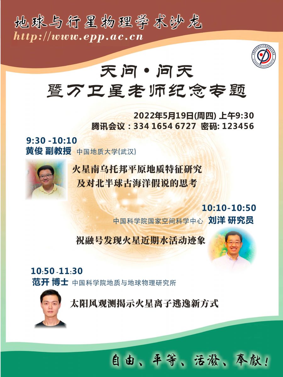 No. 2022-05 地星沙龍 5月19日 周四 天問(wèn)-問(wèn)天暨萬(wàn)衛(wèi)星老師紀(jì)念專(zhuān)題