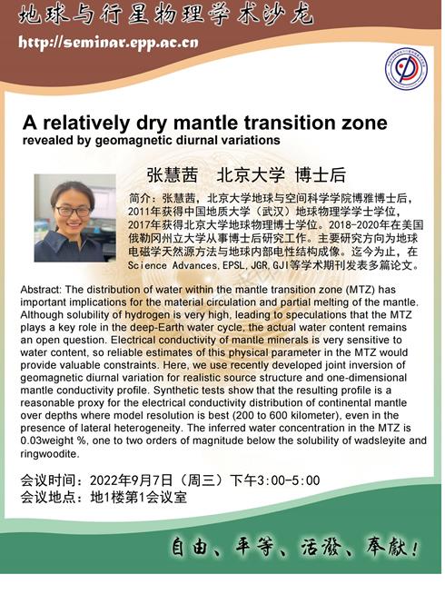 地星沙龍 9月7日 張慧茜 A relatively dry mantle transition zone