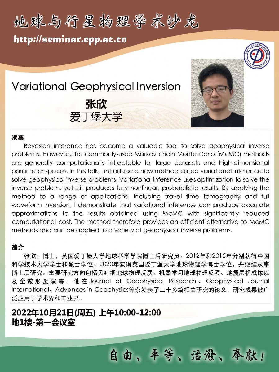 No.2022-19 地星沙龍 10月21日 周五 張欣博士 Variational Geophysical Inversion