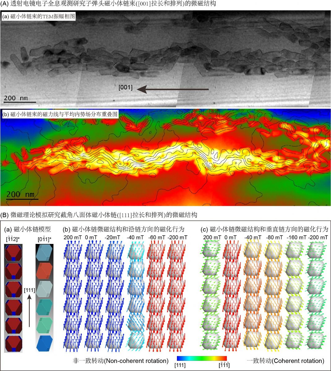 圖2 磁小體鏈(束)的微磁結(jié)構(gòu)和磁化行為