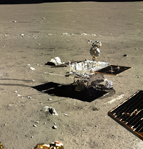 不同于返回月球樣品的實驗室分析,玉兔是在月表對原始產(chǎn)狀的月壤做就位的化學(xué)組成和光譜分析,其結(jié)果可作為月球軌道遙感探測數(shù)據(jù)的校正標準,從而解譯出全月球的化學(xué)和礦物組成。