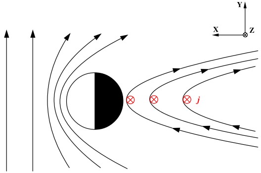圖1. 地球磁尾電流片的拍動傳播。未擾電流片在XY平面內(nèi)。