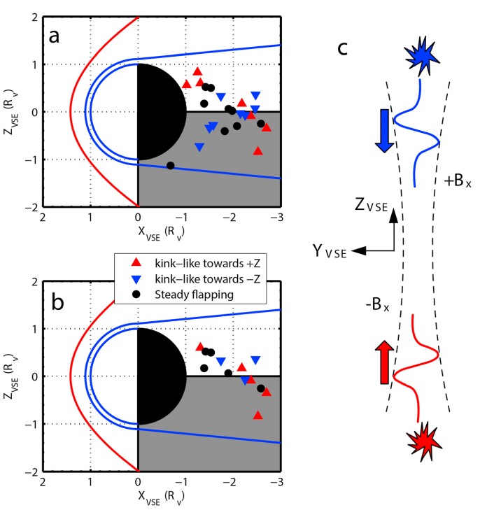 - Rong, Z. J., et al., (2015), The flapping motion of the Venusian magnetotail: Venus Express observations, J. Geophys. Res. Space Physics, 120, doi: 10.1002/2015JA021317.