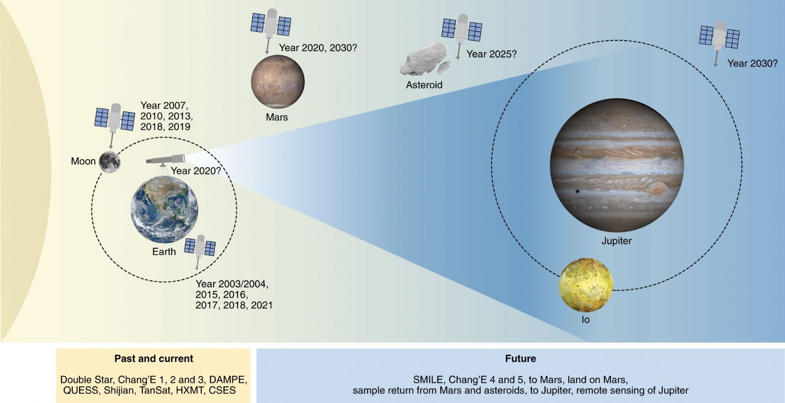 受Nature Astronomy期刊編輯邀請,我所魏勇研究員、萬衛(wèi)星院士與客座學(xué)者堯中華博士,通過對照國際空間探測發(fā)展歷史,系統(tǒng)闡述了中國的空間探測發(fā)展脈絡(luò),介紹了中國行星學(xué)界最近幾年的迅速發(fā)展,包括成立中國地球物理學(xué)會行星物理專業(yè)委員會以及創(chuàng)辦中國第一個行星物理專業(yè)期刊(Earth and Planetary Physics,簡稱EPP),并展望了未來潛在的發(fā)展方向(圖1)。