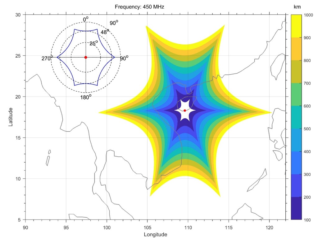 圖2 三亞雷達(dá)有效探測范圍