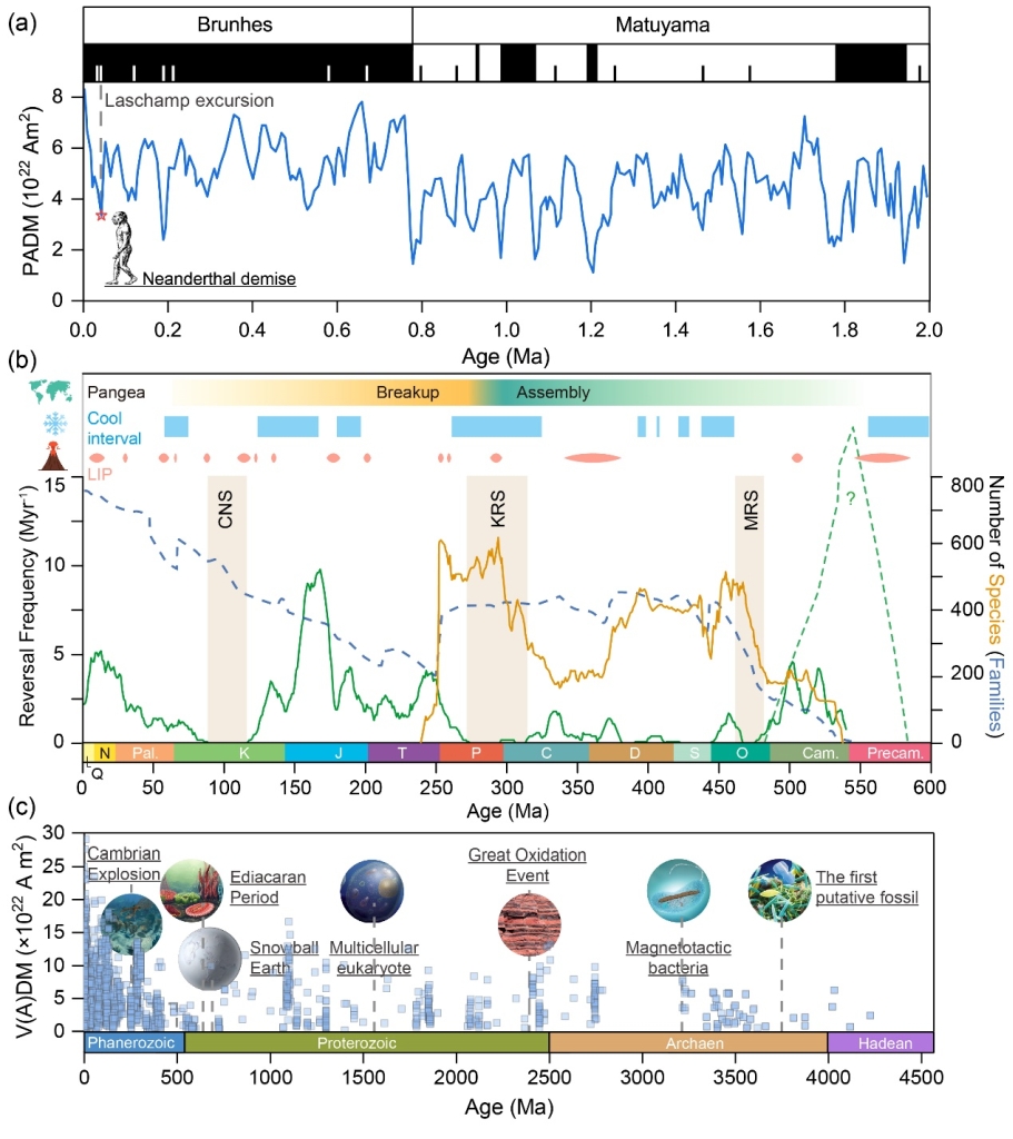 地質(zhì)歷史時期地磁極性倒轉(zhuǎn)頻率、古強度與主要地質(zhì)和生物事件