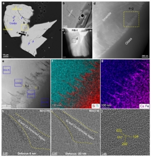 圖3 遭受過太陽(yáng)風(fēng)輻射的鈦鐵礦顆粒(P19)的顯微結(jié)構(gòu)。
