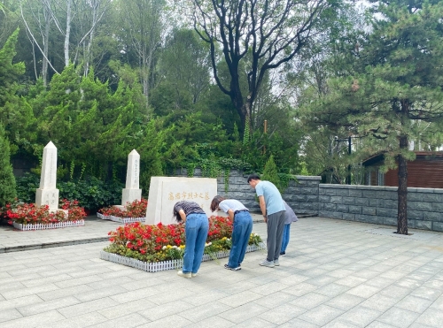午后,同志們來(lái)到陶然亭公園高君宇烈士墓前,首先由張璐璐同志介紹高君宇同志的生平事跡:高君宇同志,在五四運(yùn)動(dòng)時(shí)期為北京大學(xué)學(xué)生會(huì)負(fù)責(zé)人,1920年與鄧中夏共同組織馬克思學(xué)說(shuō)研究會(huì),作為中國(guó)共產(chǎn)黨早期的骨干成員為建立黨的組織和革命統(tǒng)一戰(zhàn)線作出了巨大的貢獻(xiàn),可惜身體不堪重負(fù),29歲便英年早逝,葬于陶然亭園內(nèi)。同志們?cè)诹沂磕骨澳Р⒕传I(xiàn)鮮花,緬懷致敬革命先烈。