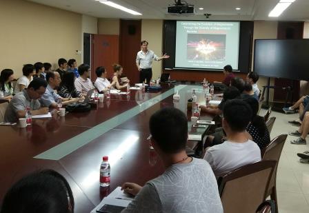 27日,Bazylinski教授做了關(guān)于極端環(huán)境趨磁細(xì)菌、實(shí)驗(yàn)室培養(yǎng)及基因組學(xué)方面的學(xué)術(shù)報告,并與實(shí)驗(yàn)室成員進(jìn)行了深入的討論和交流。