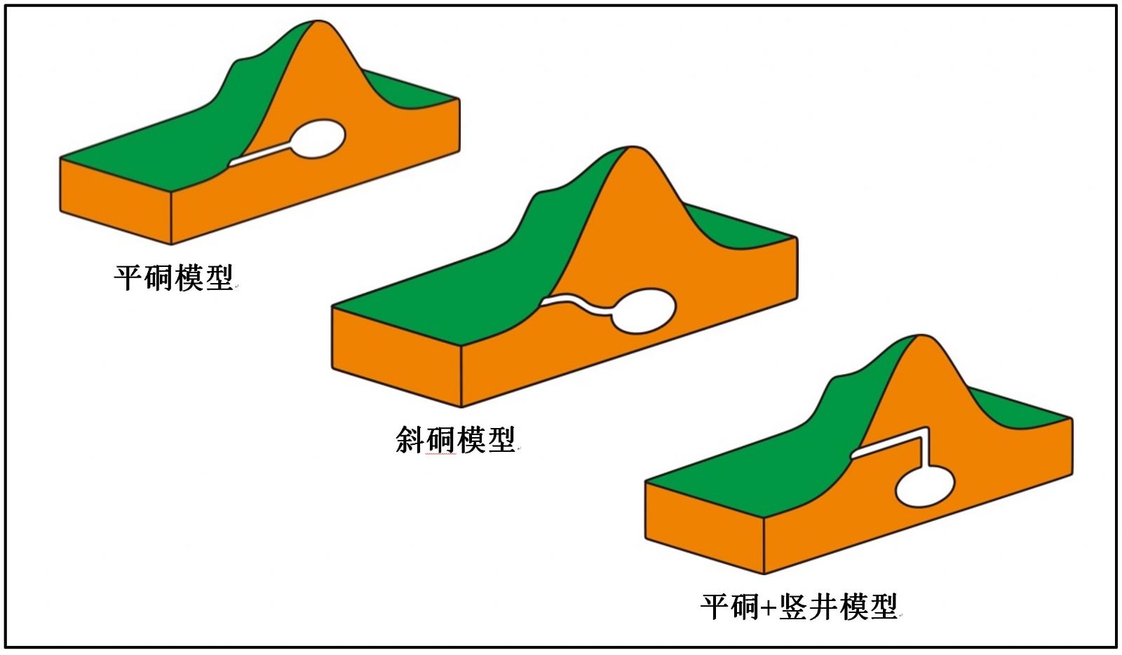 為了確定此次朝鮮地下核試驗(yàn)的地震當(dāng)量,我們使用中國(guó)東北及鄰近地區(qū)寬頻帶高分辨率的Lg波衰減模型(Zhao et al., 2010)得到2017年9月3日朝鮮核試驗(yàn)的Lg波體波震級(jí)mb為5.56。 然后通過(guò)完全耦合的Bowers, et al. (2001) 的震級(jí)-當(dāng)量公式得到相應(yīng)的地震學(xué)當(dāng)量為56 kt (千噸)(圖3),誤差范圍為30 - 80 kt。由于缺乏實(shí)際的震源深度信息,這一結(jié)果是基于埋藏深度符合正常的當(dāng)量-深度比例關(guān)系得到的估計(jì)值。為了防止核泄露造成環(huán)境污染,較大當(dāng)量的地下核試驗(yàn)通常深埋。實(shí)際的核裝置的地下埋藏模型包括平硐、斜硐和平硐+豎井模型,如圖4所示。此次核試驗(yàn)的當(dāng)量較大,我們推測(cè)為平硐+豎井的埋藏方式。根據(jù)衛(wèi)星圖片顯示的朝鮮核試驗(yàn)場(chǎng)堆積的土方量,推測(cè)挖掘深度可能達(dá)到1000 – 2400 m。這樣,根據(jù)震級(jí)-深度-當(dāng)量的經(jīng)驗(yàn)關(guān)系(Zhang and Wen, 2013),此次朝鮮核試驗(yàn)的當(dāng)量估計(jì)范圍擴(kuò)展到100 - 200 kt,如圖5所示。