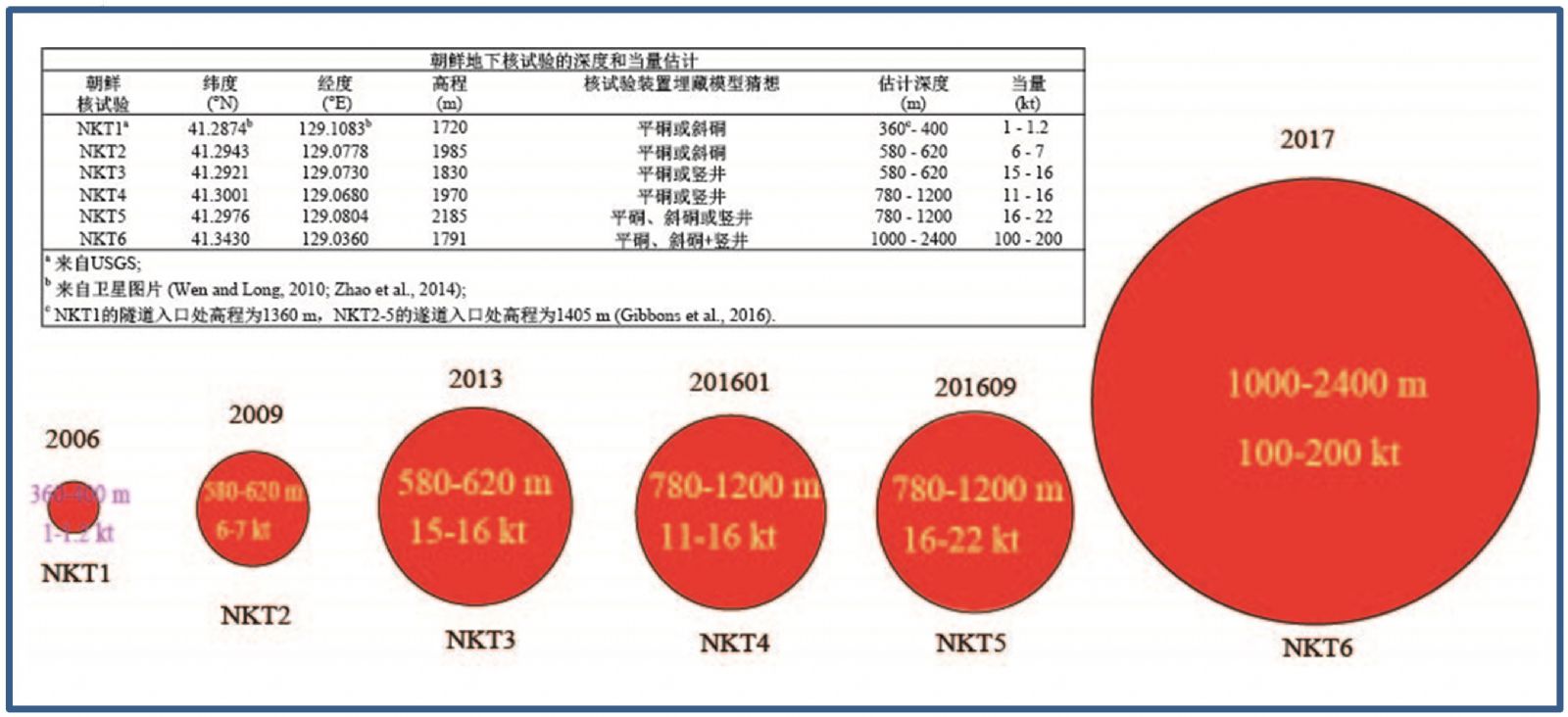 圖5朝鮮地下核試驗(yàn)的深度和當(dāng)量估計(jì)。
