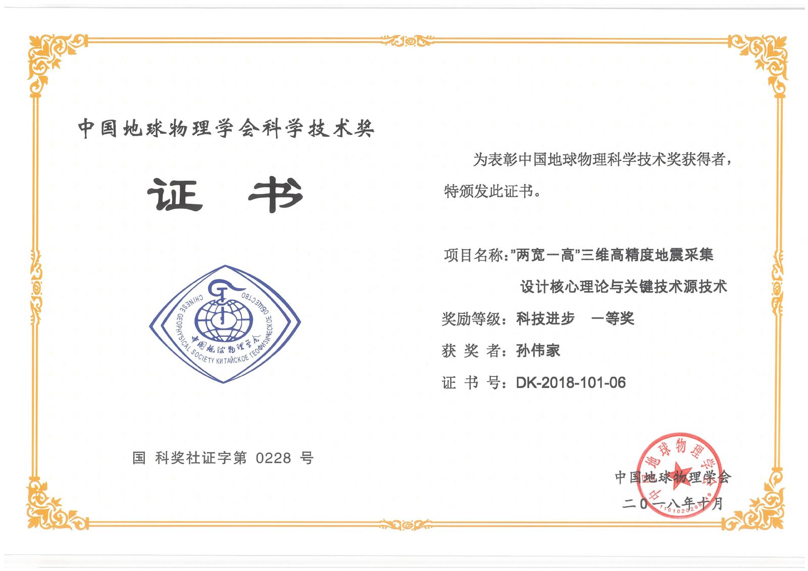 為推動地球物理科技進(jìn)步、提高地球物理學(xué)科研究和應(yīng)用水平、促進(jìn)中國地球物理學(xué)科發(fā)展,中國地球物理學(xué)會設(shè)立"中國地球物理學(xué)會科學(xué)技術(shù)獎",其分為科學(xué)技術(shù)進(jìn)步獎和科學(xué)技術(shù)創(chuàng)新獎。其中,中國地球物理學(xué)會科學(xué)技術(shù)進(jìn)步獎為團(tuán)體獎項,分為一等獎、二等獎和三等獎三個等級。